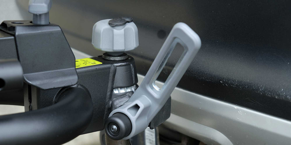 - Eine Kontrolleinrichtung erinnert daran, dass der Träger sicher auf der Anhängerkupplung einrastet