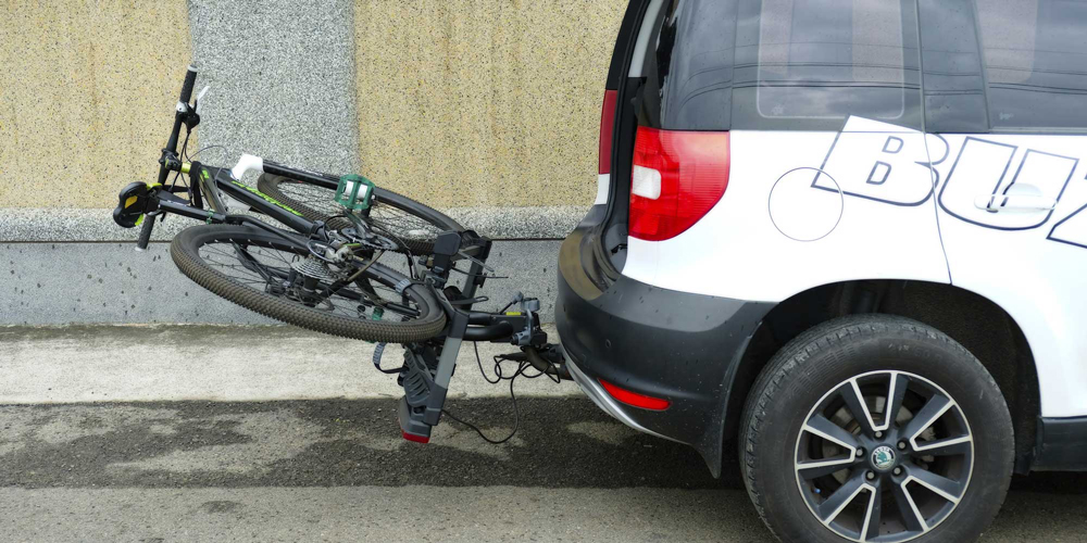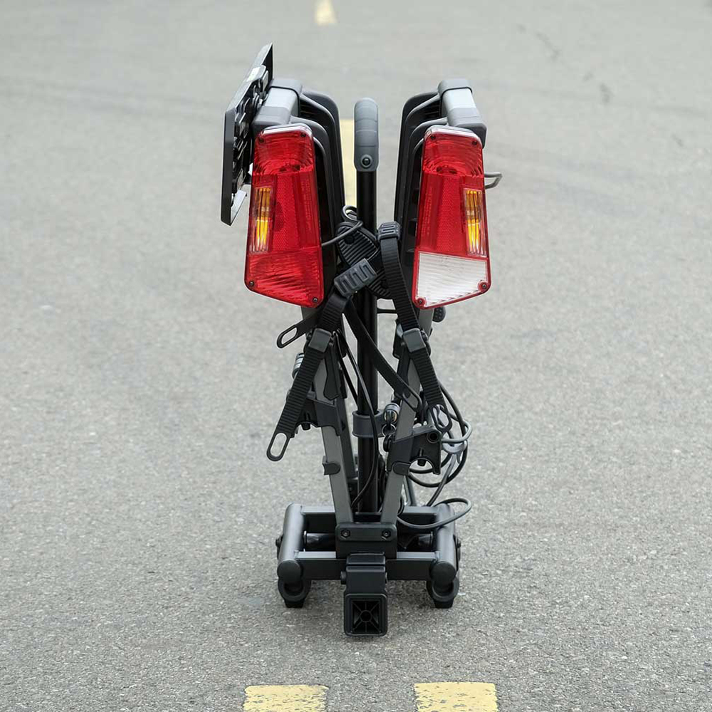 - Abklappmechanismus mit befestigten Fahrrädern am Fahrrradträger