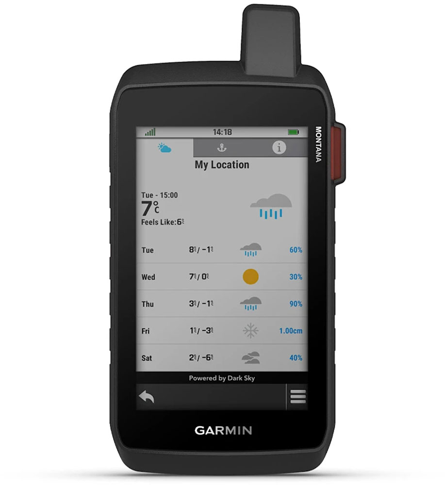 Der verfügbare inReach-Wetterdienst liefert detaillierte Updates direkt auf das Montana oder auf gekoppelte Geräte, damit du weißt, wie die Wetterlage unterwegs ist.