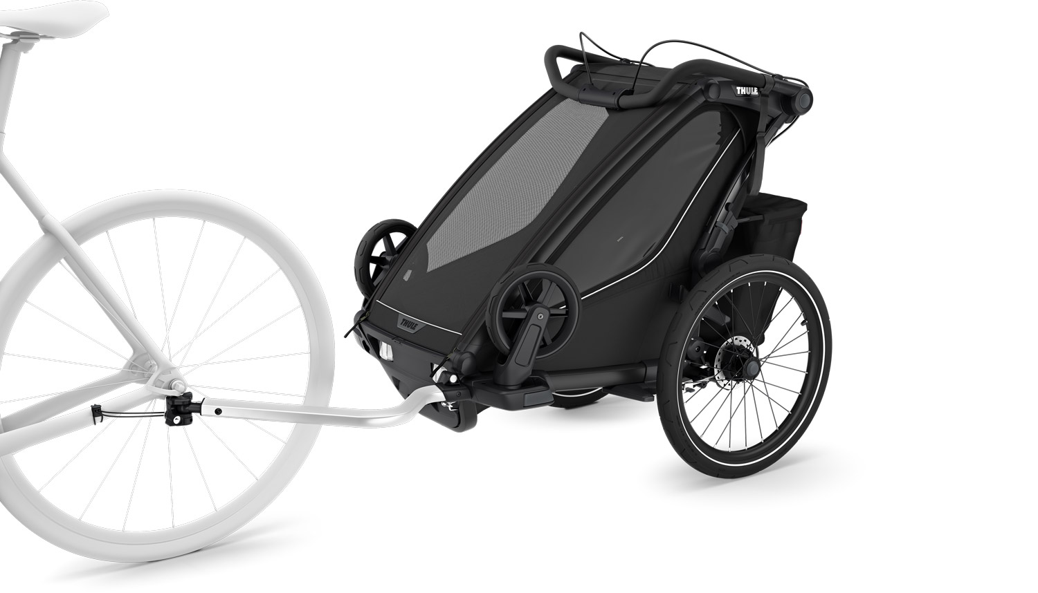 - Das neu gestaltete FlipWing-System ermöglicht einen noch einfacheren Wechsel zwischen Radfahren und Spazieren, da die Räder jetzt nach oben und unten geklappt werden können, während der Anhänger am Fahrrad befestigt ist
