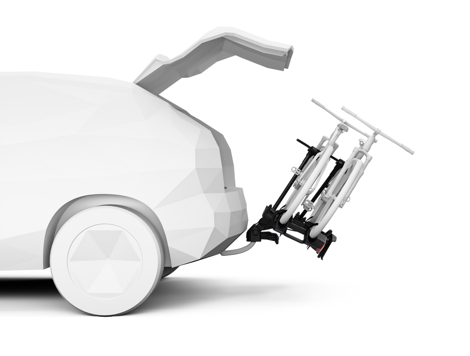 - Kippfunktion: Neigt sich beim Parken in Richtung des Fahrzeugs und ist somit ideal für den Stadtverkehr. Hinweis: Der Fahrradträger darf sich während des Fahrens nicht in aufrechter Position befinden; diese Funktion ist nur zum Parken von Fahrrädern